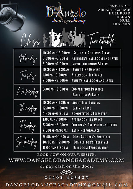 All classes must be booked in advanced, please see full schedule below.